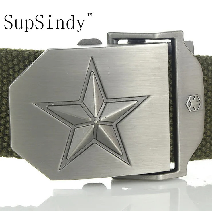 Special Offer SupSindy キャンバスベルト高級ベルト男性有名なブランドベルト軍事ジーンズベルト三次元五芒星アーミーグリーン 120 センチ Discount 23% Today!