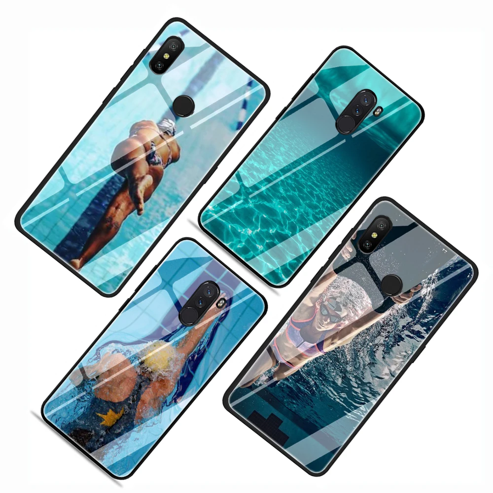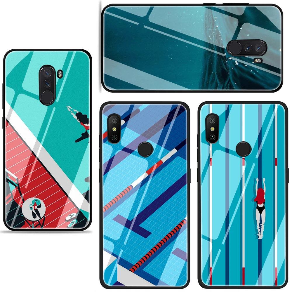 Special Offer 水泳 Mi Ng プール素敵な強化ガラス電話カバーケースシャオ Mi Mi 8 9 赤 Mi 4X 6A 注 5 6 7 プロ Pocophone F1 Discount 25% Today!