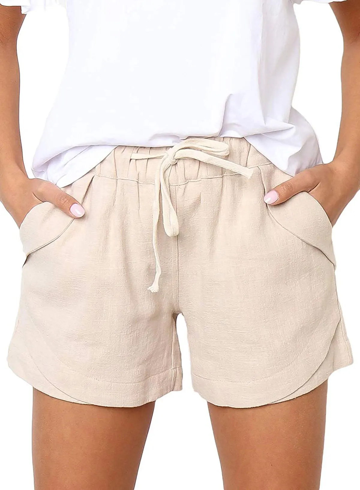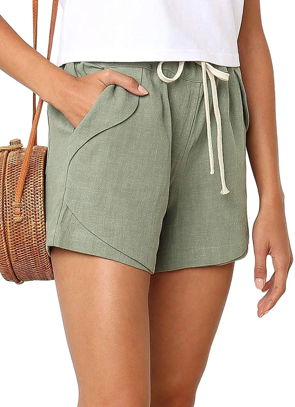 Special Offer 2020 夏巾着弾性ウエスト綿と麻ショーツカーキライトグリーン女性ショート Discount 30% Today!