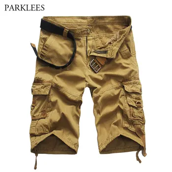 Special Offer 新トレンドカーゴショーツ男性 2018 夏ブランドメンズカジュアル膝丈綿ショーツマルチポケットルーズバミューダ Masculina カーキ 38 Discount 49% Today!