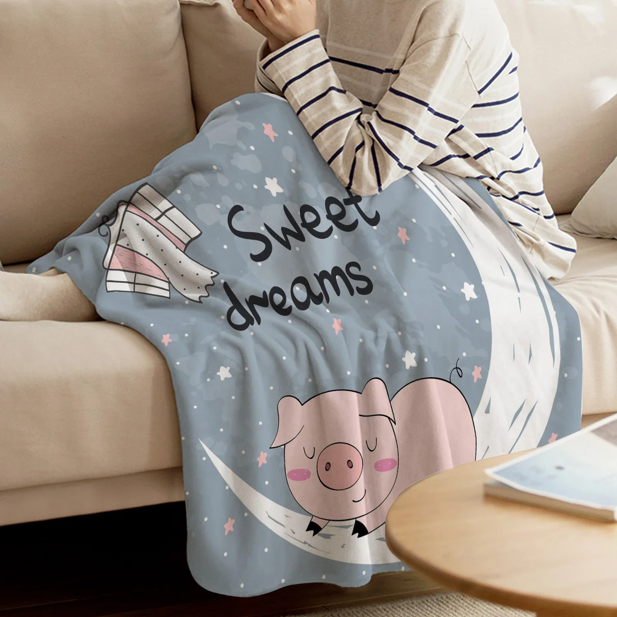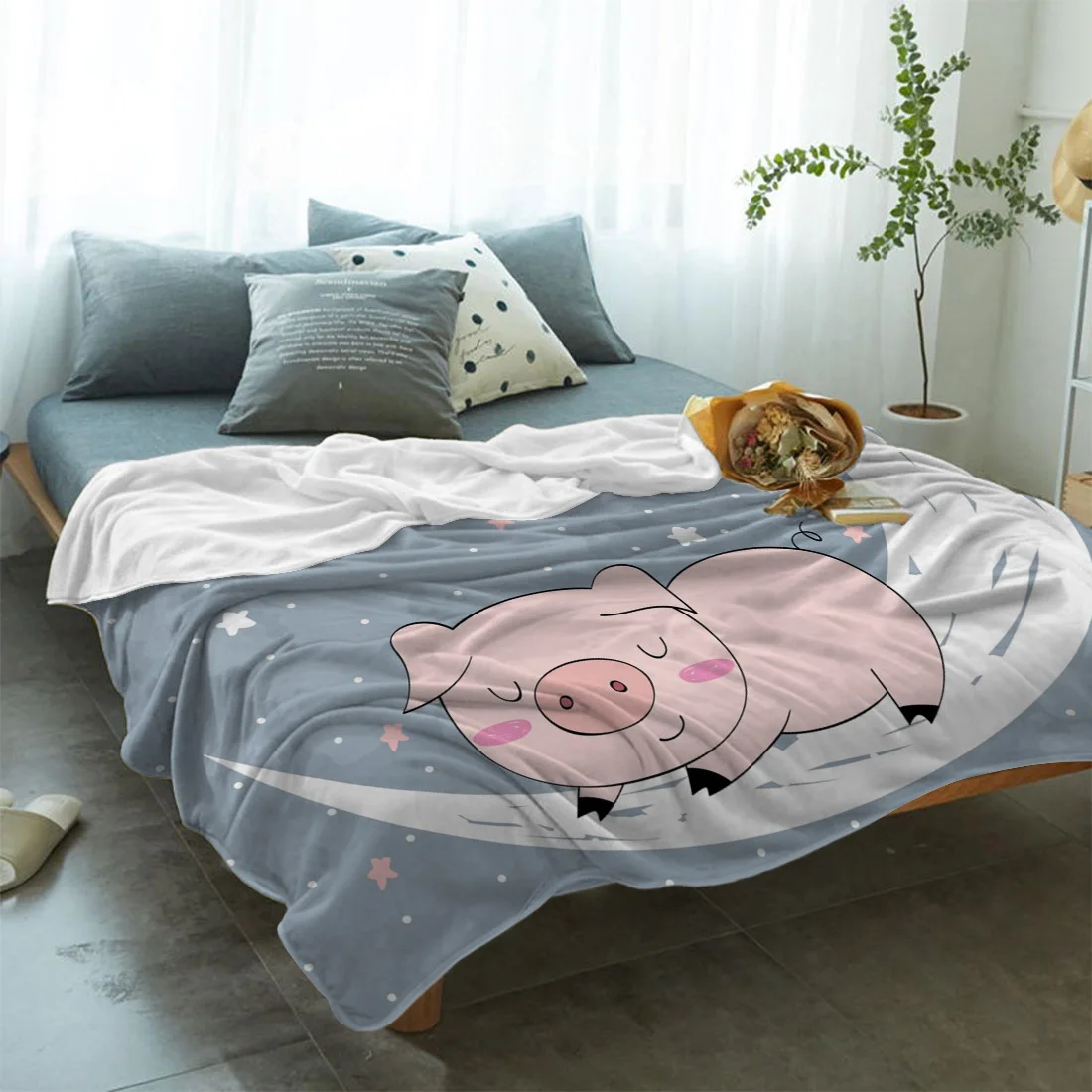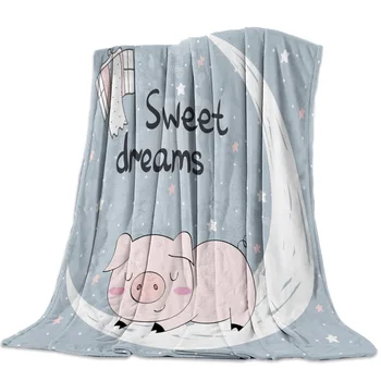 Special Offer 豚ムーン漫画かわいい星春と秋ソフトフランネル毛布オフィス昼寝ブランケットソファベッド毛布 Discount 53% Today!