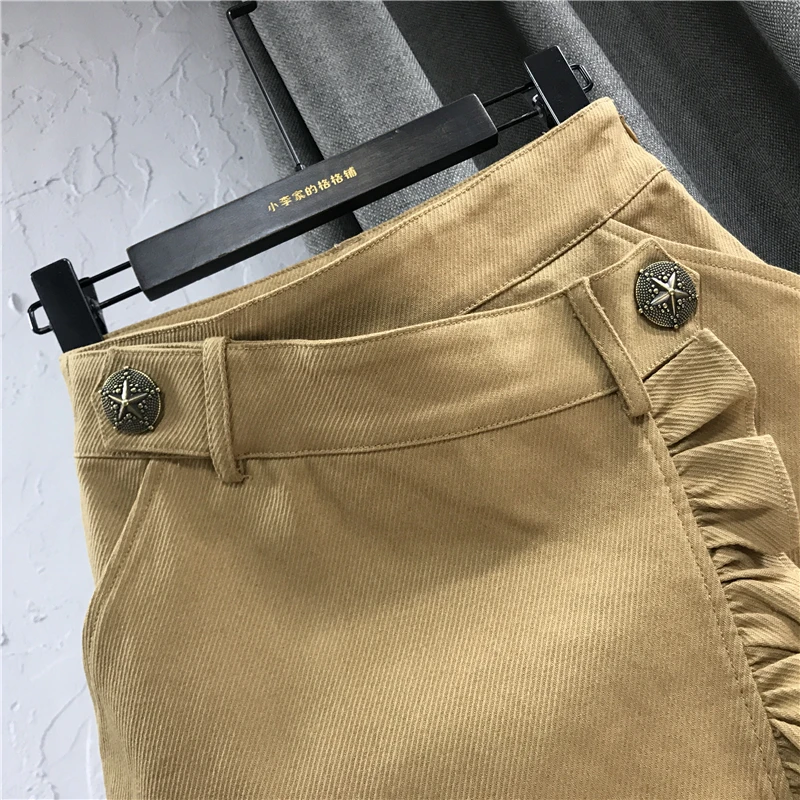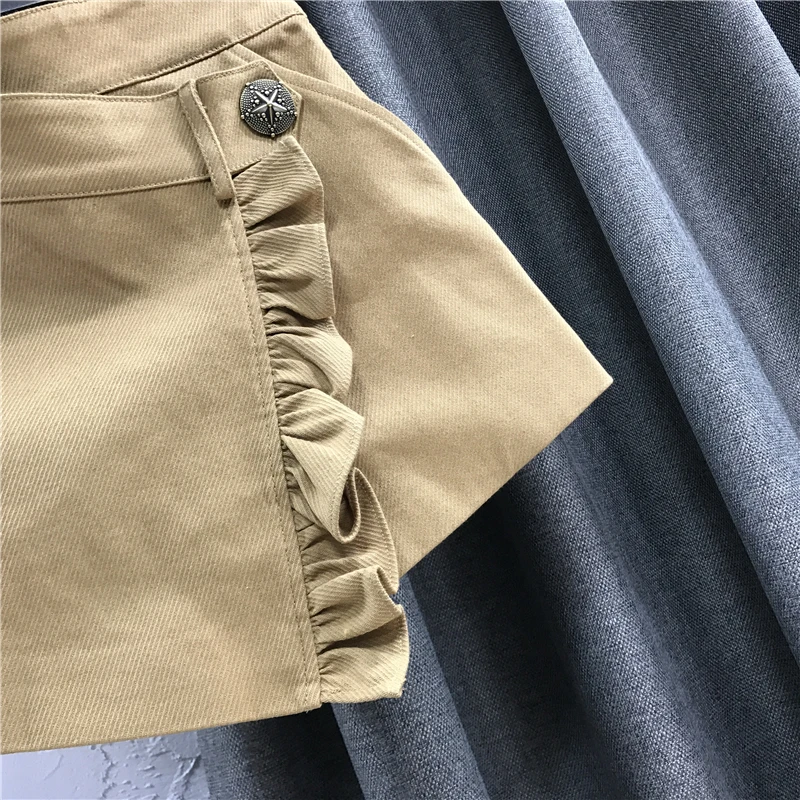 . (0% Off) 買取 パッチワークの背ウエストルースワイド脚パンツ女性2020夏のカーキショーツ洋風カウボーイ単語スカート オンライン 価格.
