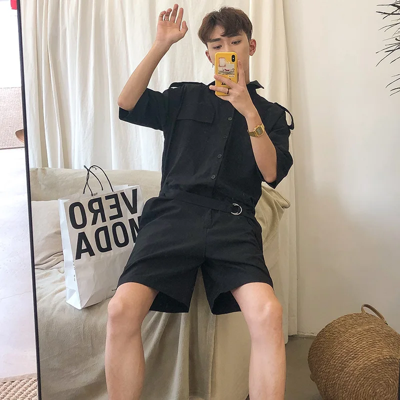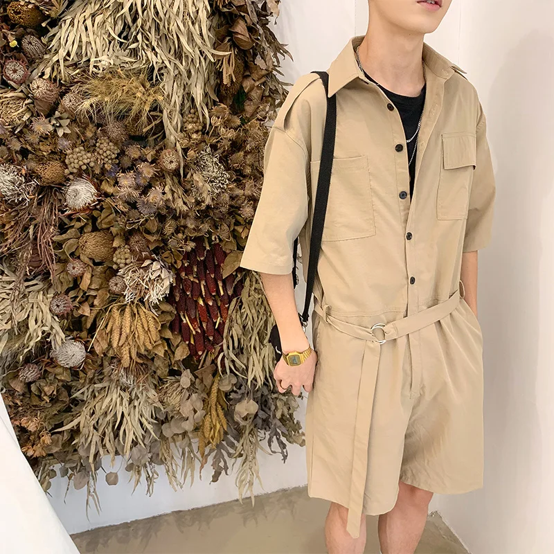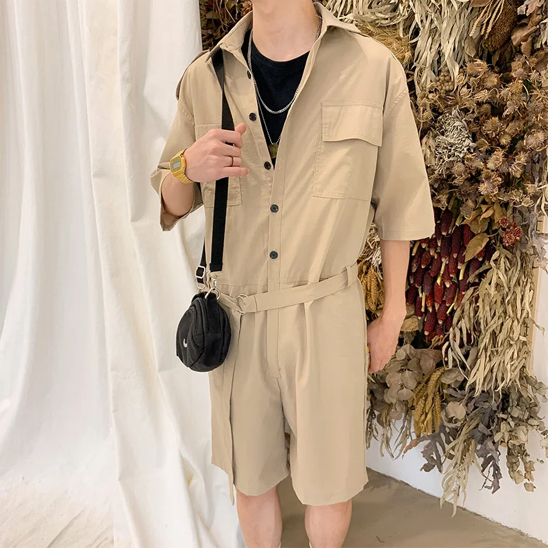 . (0% Off) 買取 作業服ワンピースショーツインファッションブランドメンズルーズ半袖ワンピーススーツストラップとパンツカジュアルスーツ オンライン 価格.