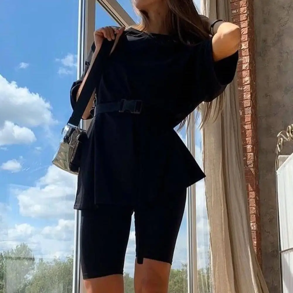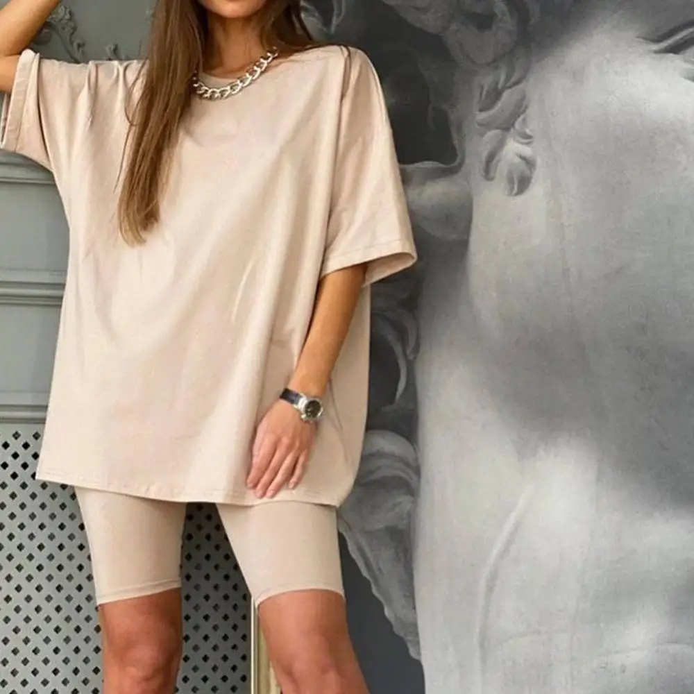 . (25% Off) 買取 ファッション白カーキセクシーな女性の夏の O ネック半袖シャツトップスとボディコンショーツボトムスーツ 2 枚組衣装 #0602 オンライン 価格.