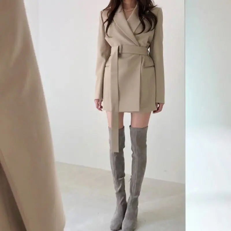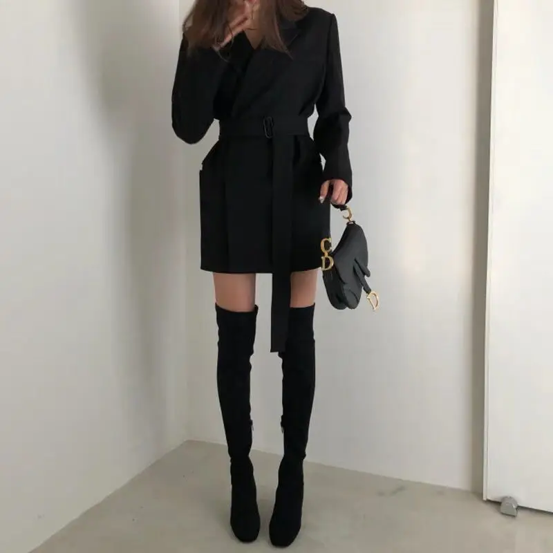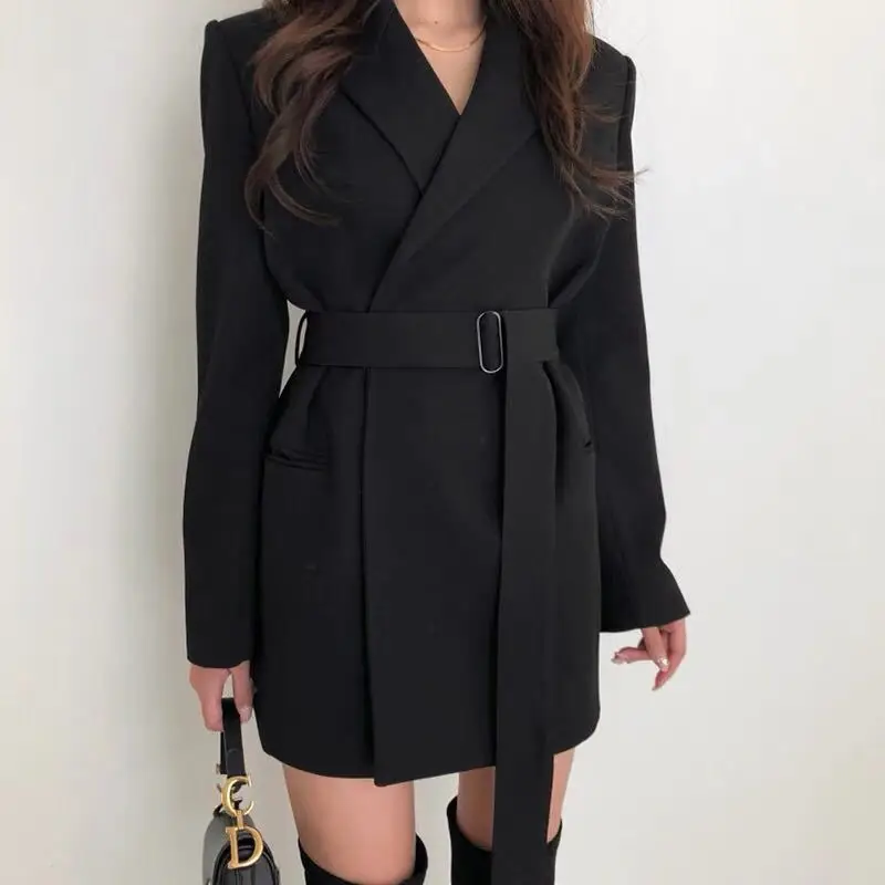 Special Offer 冬服、ショートパンツ、女性の秋の新カジュアル服ポケットサッシオフィス女性のロングコートエレガントな黒の長袖カーキ Discount 25% Today!