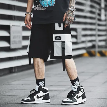 Special Offer 男性ストリートカラーブロックカーゴショーツ 2020 夏のヒップホップショーツ男性ジョギングポリエステル Sweatshorts ベルトカーキショーツ Discount 30% Today!