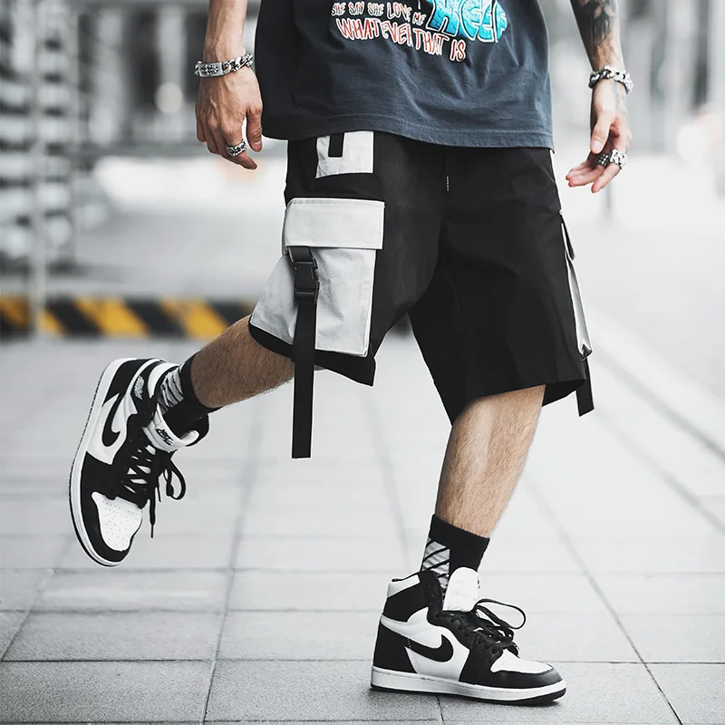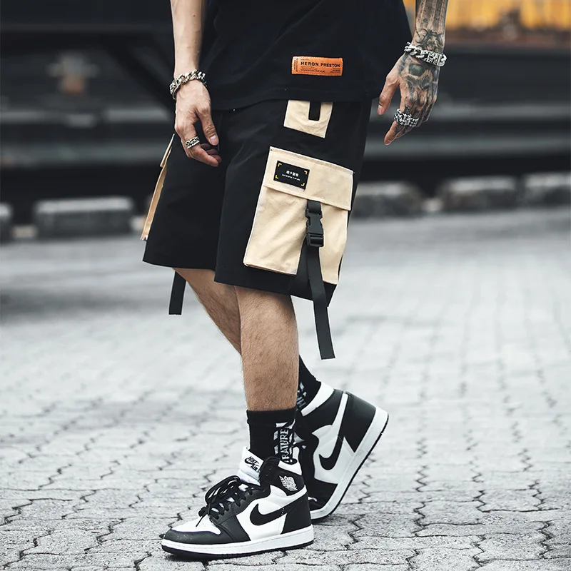 . (30% Off) 激安 男性ストリートカラーブロックカーゴショーツ 2020 夏のヒップホップショーツ男性ジョギングポリエステル Sweatshorts ベルトカーキショーツ 通販 価格.