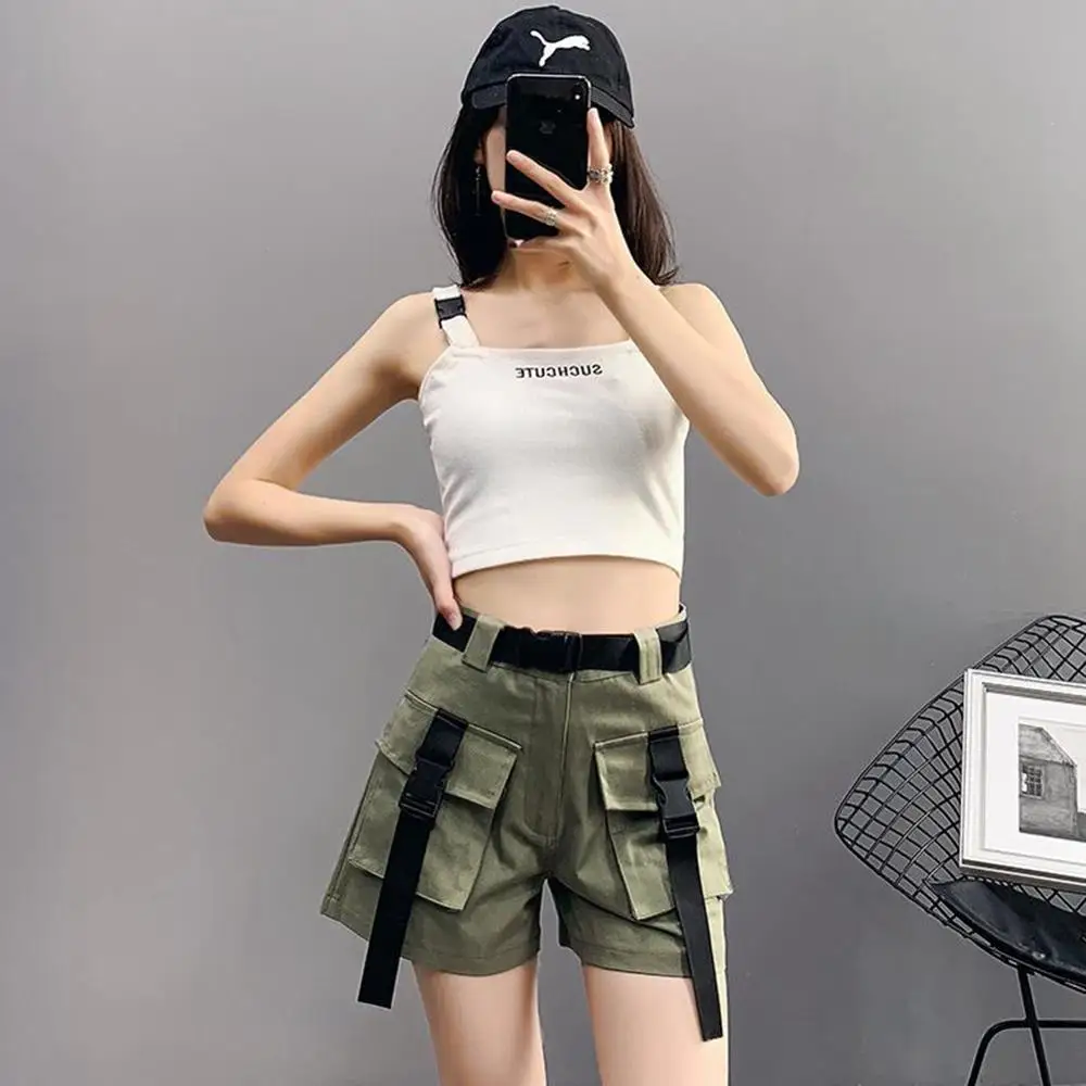Special Offer 夏の女性黒カーキための女性ハイウエストワイドレッグパンツレディースベルトショートパンツ服ホット Discount 30% Today!