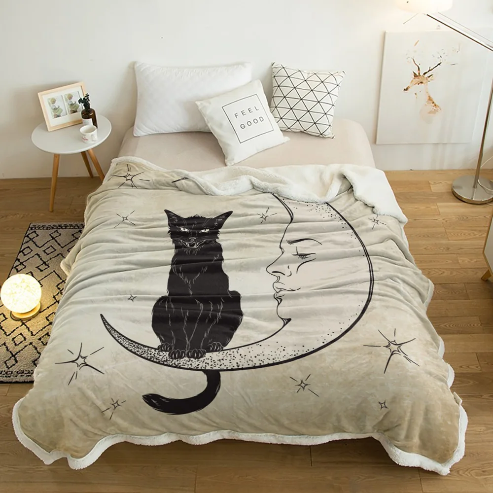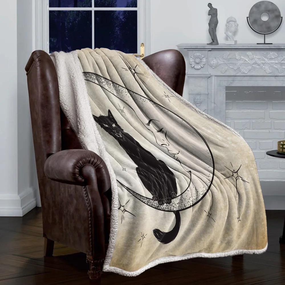 Special Offer Bighouses スローブランケット猫ムーン星レトロベッドカバー毛布フリーススローカバーラップパーソナライズ厚い Discount 31% Today!