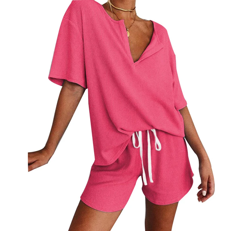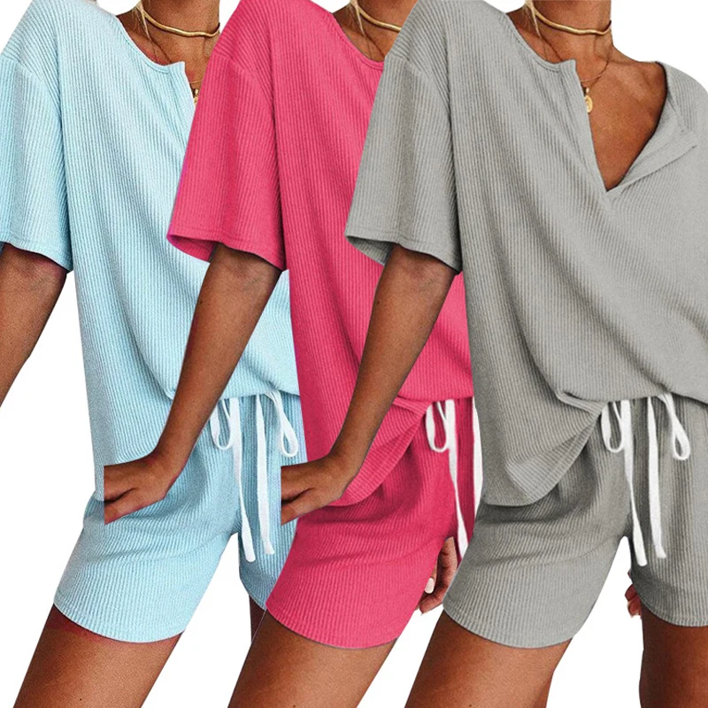 Special Offer 新しい夏ツーピース女性セットカジュアルo-ネックカーキ半袖 2 点セット女性クロップトップとショーツ巾着衣装 Discount 39% Today!