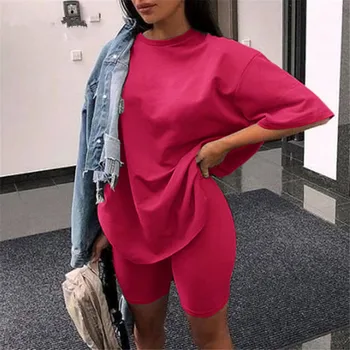 Special Offer ファッションカーキ女性の夏の O ネックセット半袖シャツトップスとボディコンバイカーパンツボトム 2 個セット衣装スーツ Discount 4% Today!