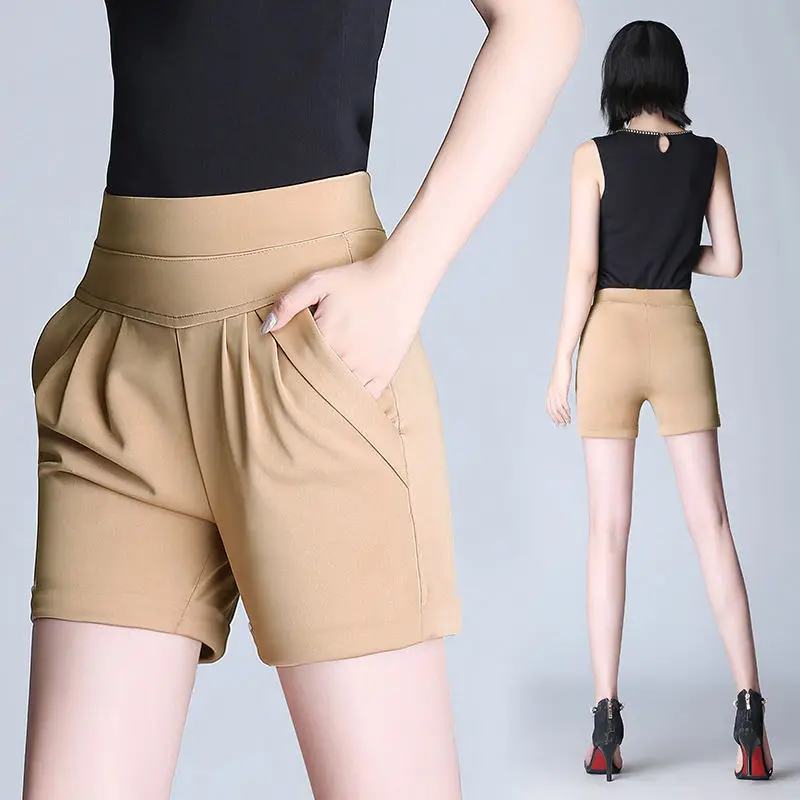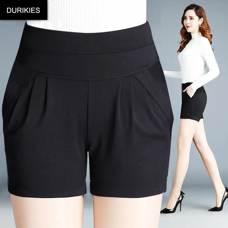 . (50% Off) 買取 女性のショートパンツ夏新スタイル弾性ウエストルース大サイズ黒カーキスキニーセクシーな女性服カジュアルショーツプラスサイズ オンライン 価格.