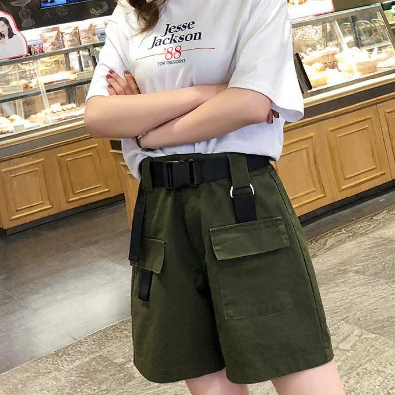 Special Offer ショーツレディース夏 2020 Bf ルーズミッドウエスト貨物カーキカジュアルベルト固体ポケットクールストリートファッションシックなノベルティ女性ホットな新 Discount 5% Today!