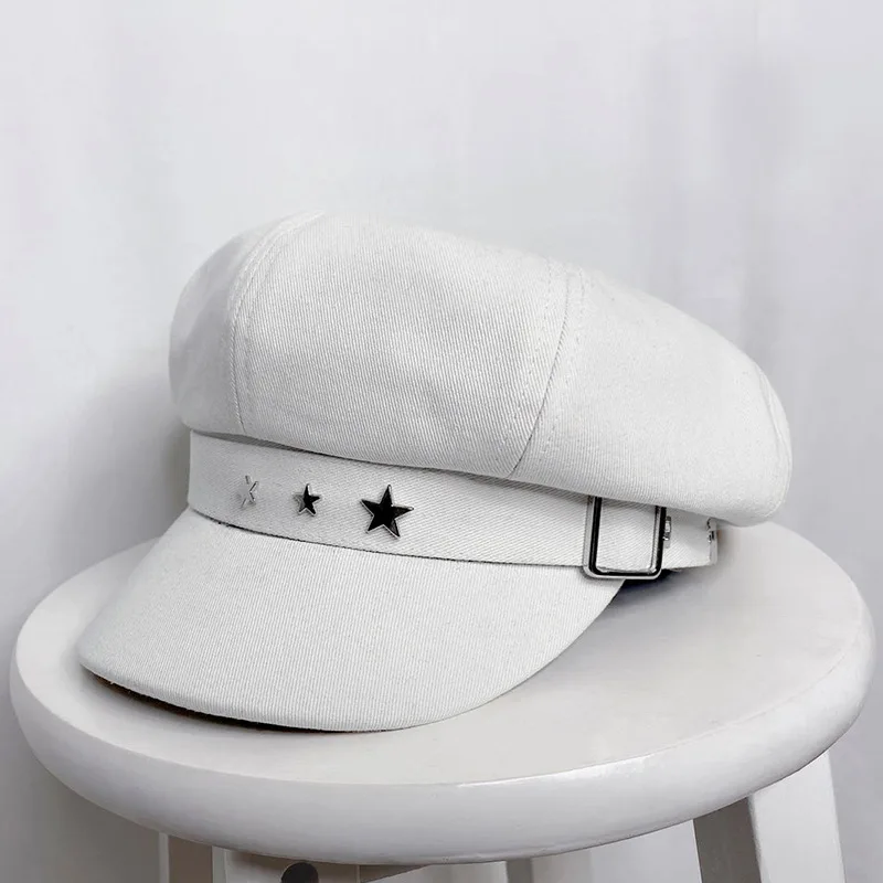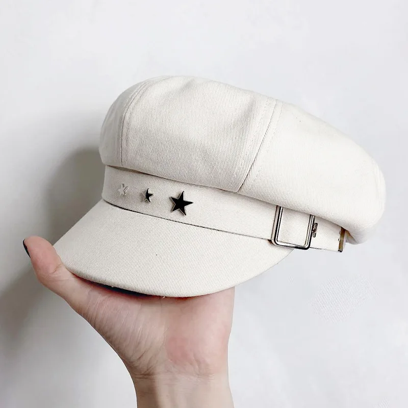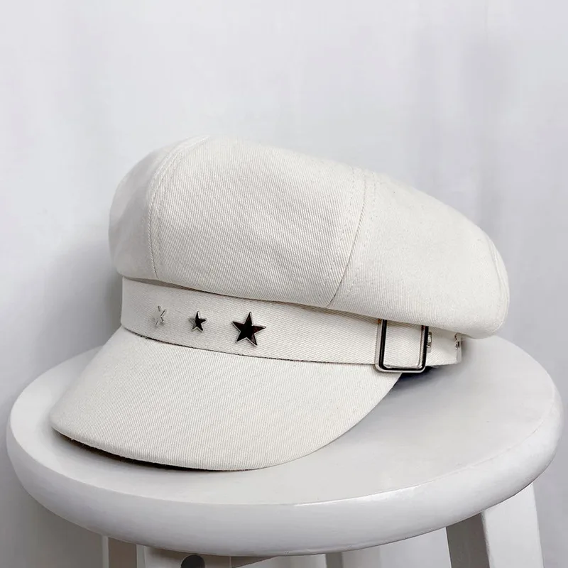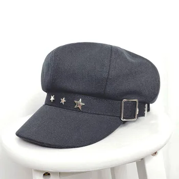 Special Offer 綿スター金属パッチワーク軍事帽子秋セーラー帽子女性のためのフラットトップ女性旅行士官候補生帽子キャプテンキャップベレー03 Discount 0% Today!