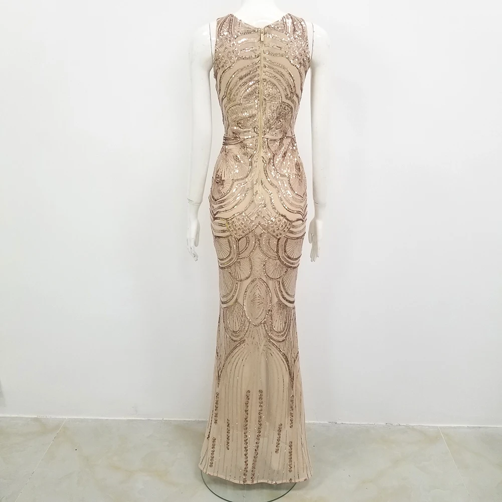 Special Offer セクシーなディープvネックスパンコール刺繍ドレスハイウエストミドルスターショーホスト社会ウエディングイブニングドレススリム痩身 Discount 0% Today!