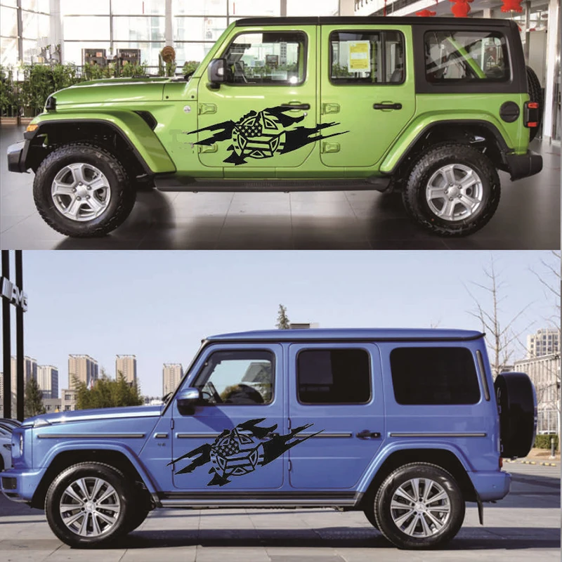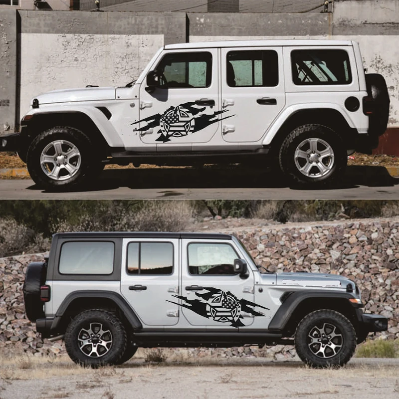 . (15% Off) 買取 2 個の車のサイドドアドアビニールステッカーフィルムスタイリング軍軍事スター用ジープラングラーsuv オンライン 価格.