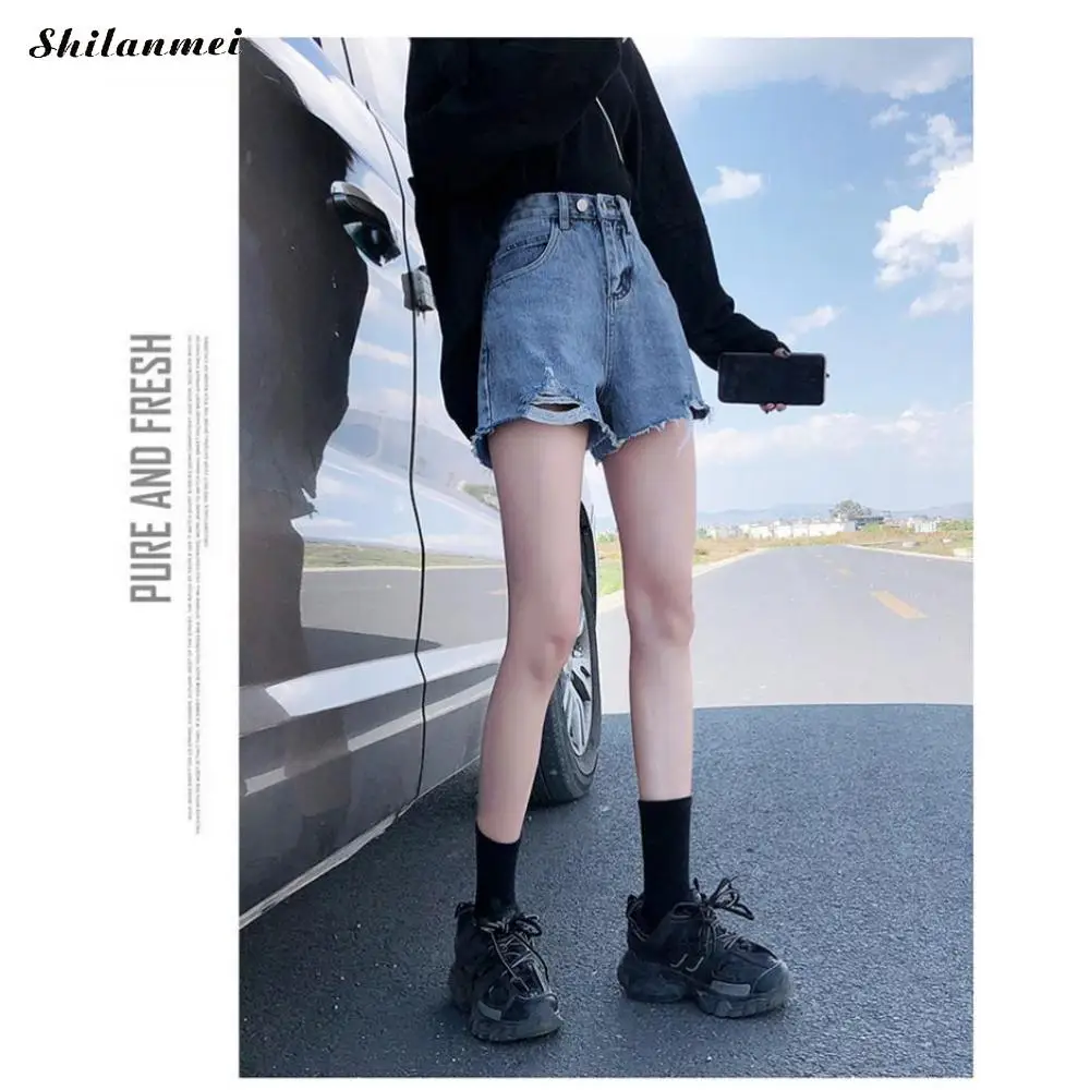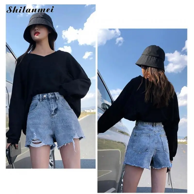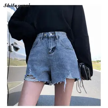 Special Offer 女性aライン女子ショートジーンズカーキワイド脚伸縮性ウエストハイウエストshortpants女性夏細断ショーツ 2020 Discount 32% Today!