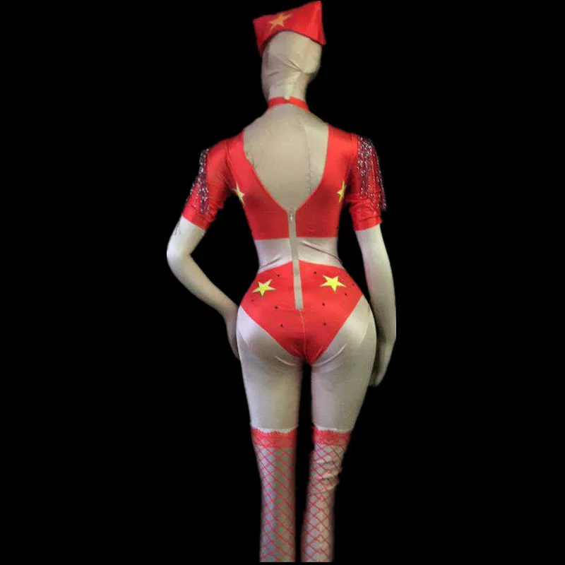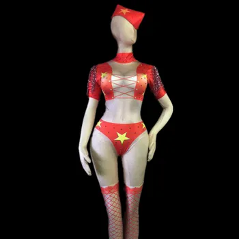 Special Offer 軍事スタイル女性ナイトクラブポールダンスパフォーマンス衣装女性スター柄登るジャンプスーツ女性のクリスマスの服 Discount 0% Today!