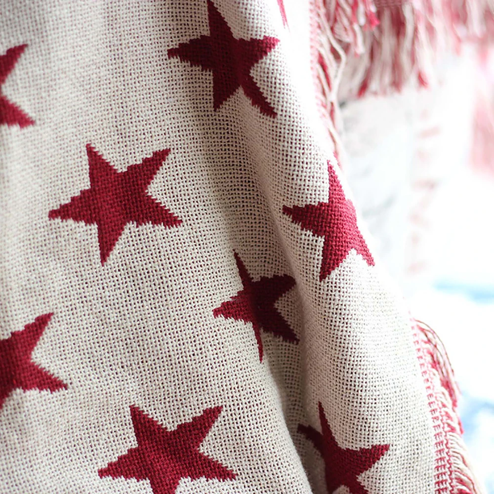 . (15% Off) 激安 ライチ赤スター印刷綿ソファタオルカバーポータブルベッドソファスローブランケット 通販 価格.