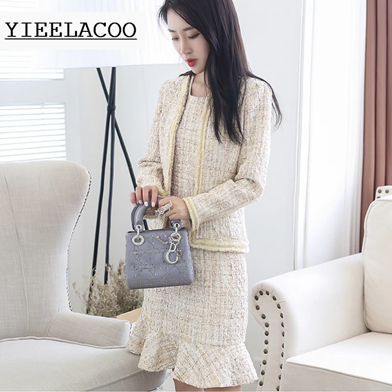 Special Offer カーキツイードジャケット + ノースリーブドレススーツスパンコール生地カスタム秋/冬の女性のジャケットの女性 2 のドレススーツ Discount 0% Today!