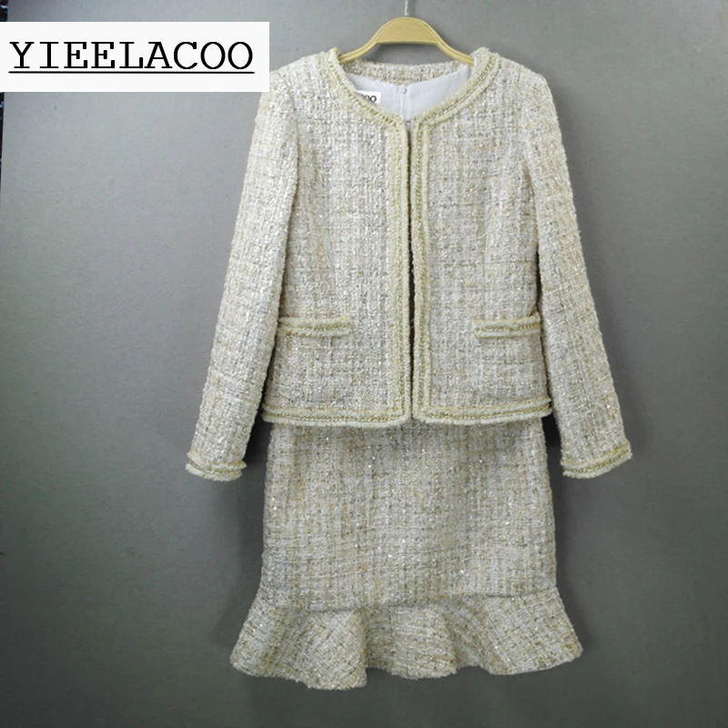 . (0% Off) 激安 カーキツイードジャケット + ノースリーブドレススーツスパンコール生地カスタム秋/冬の女性のジャケットの女性 2 のドレススーツ オンライン 価格.
