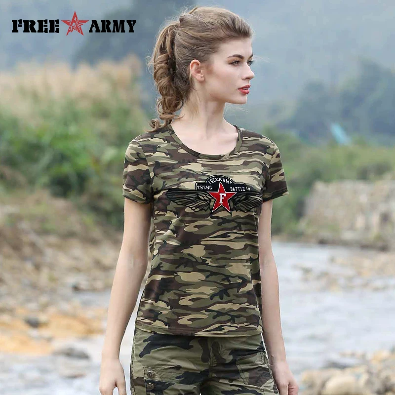. (0% Off) 買取 FreeArmy ブランド迷彩 Tシャツ品質の女性ライクラ綿プラスサイズスター Tシャツ女の子 Tシャツの女性の夏トップス オンライン 価格.