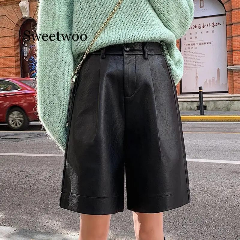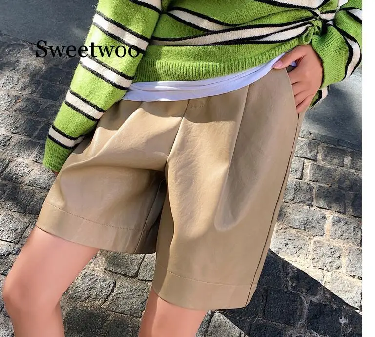 Special Offer ハイウエスト弾性 Pu レザーショーツ女性のファッションクールなパンクショートパンツ通気性ファッションパンツカーキ Discount 0% Today!