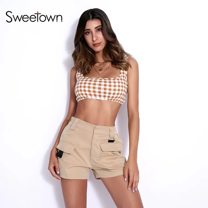 . (40% Off) 安い Sweetown ハイウエストプラスサイズショーツ女性ブラック/ホワイト/カーキコットンレディースショーツ夏ショートファム Ete 2018 ストリート 通販 価格.